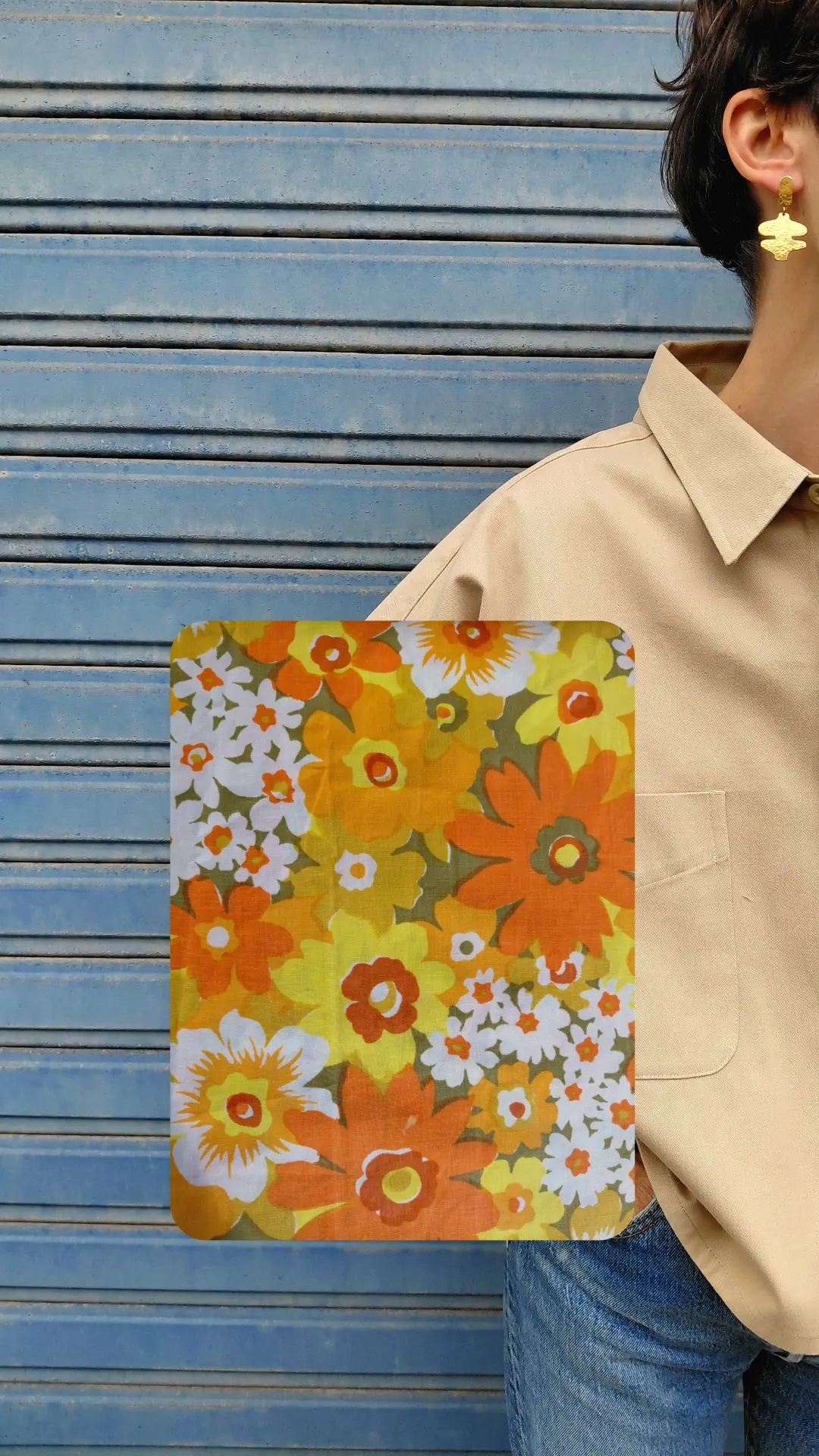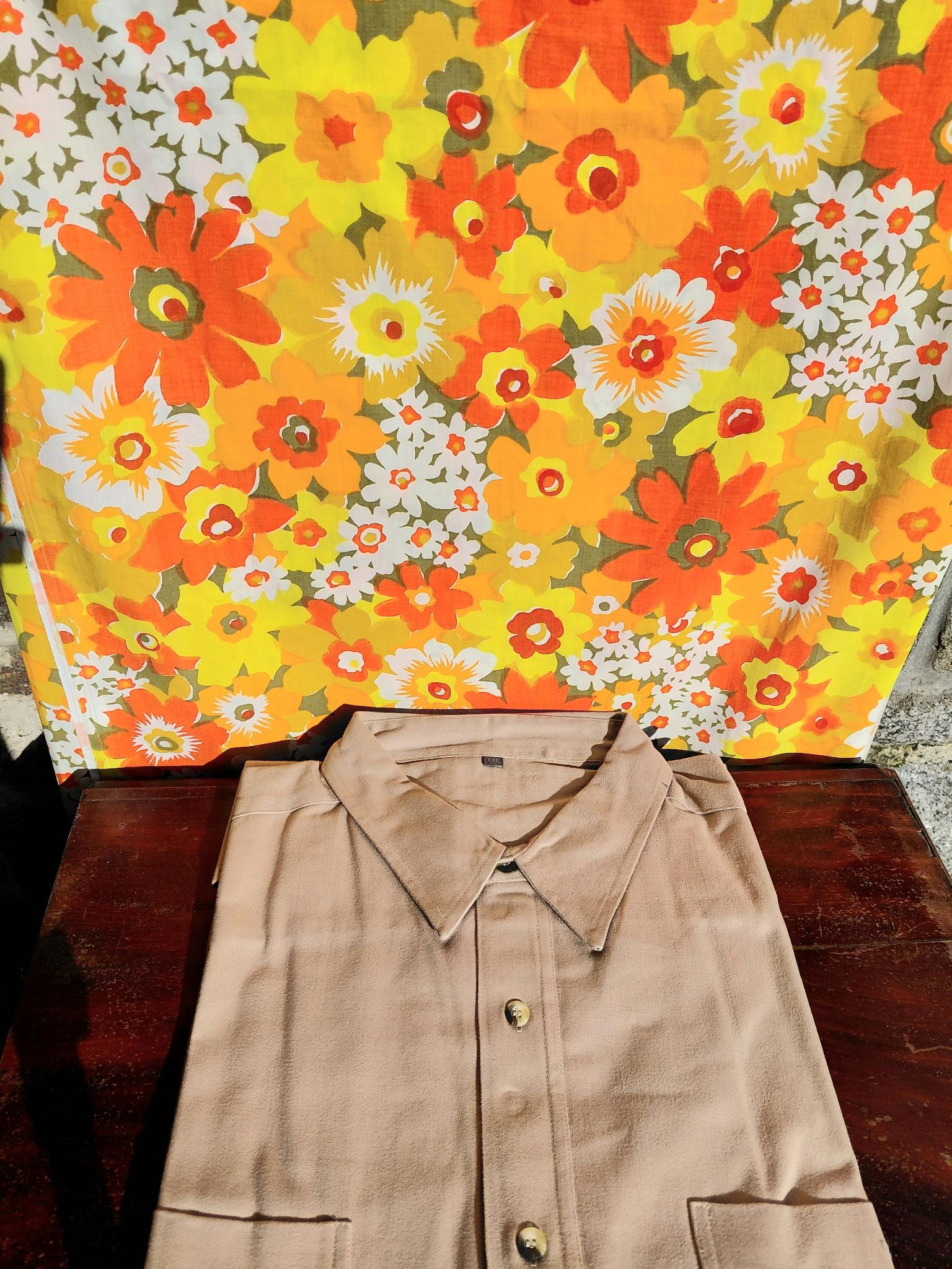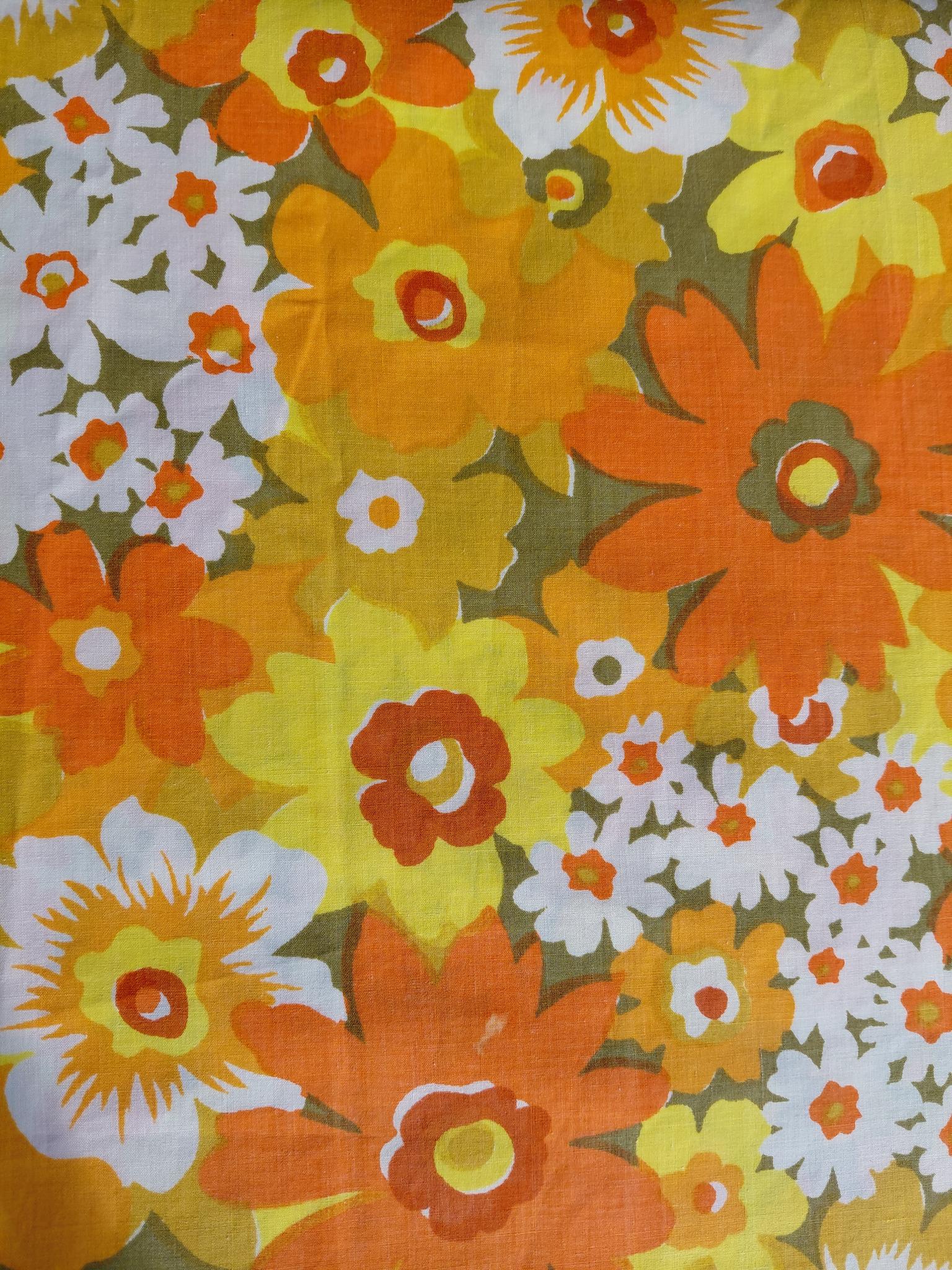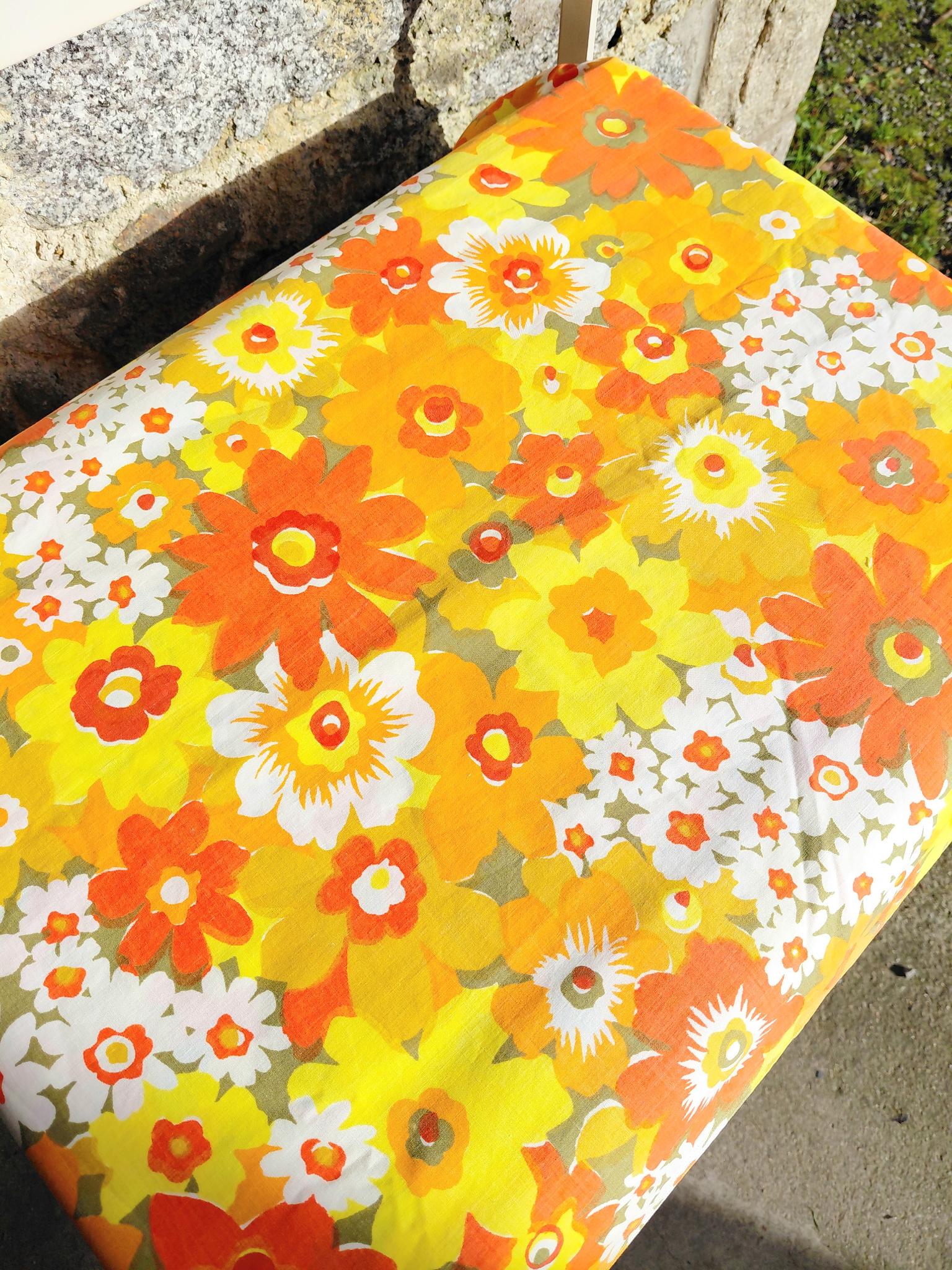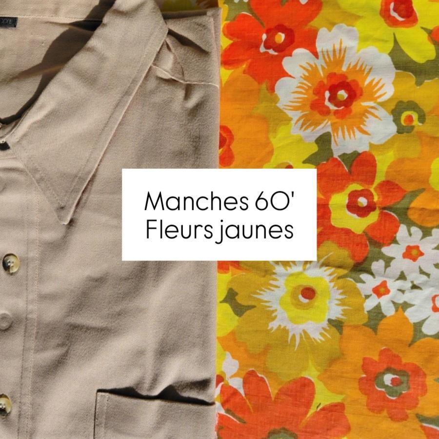 Manches motifs 60′ fleurs jaunes, drap 100% coton.