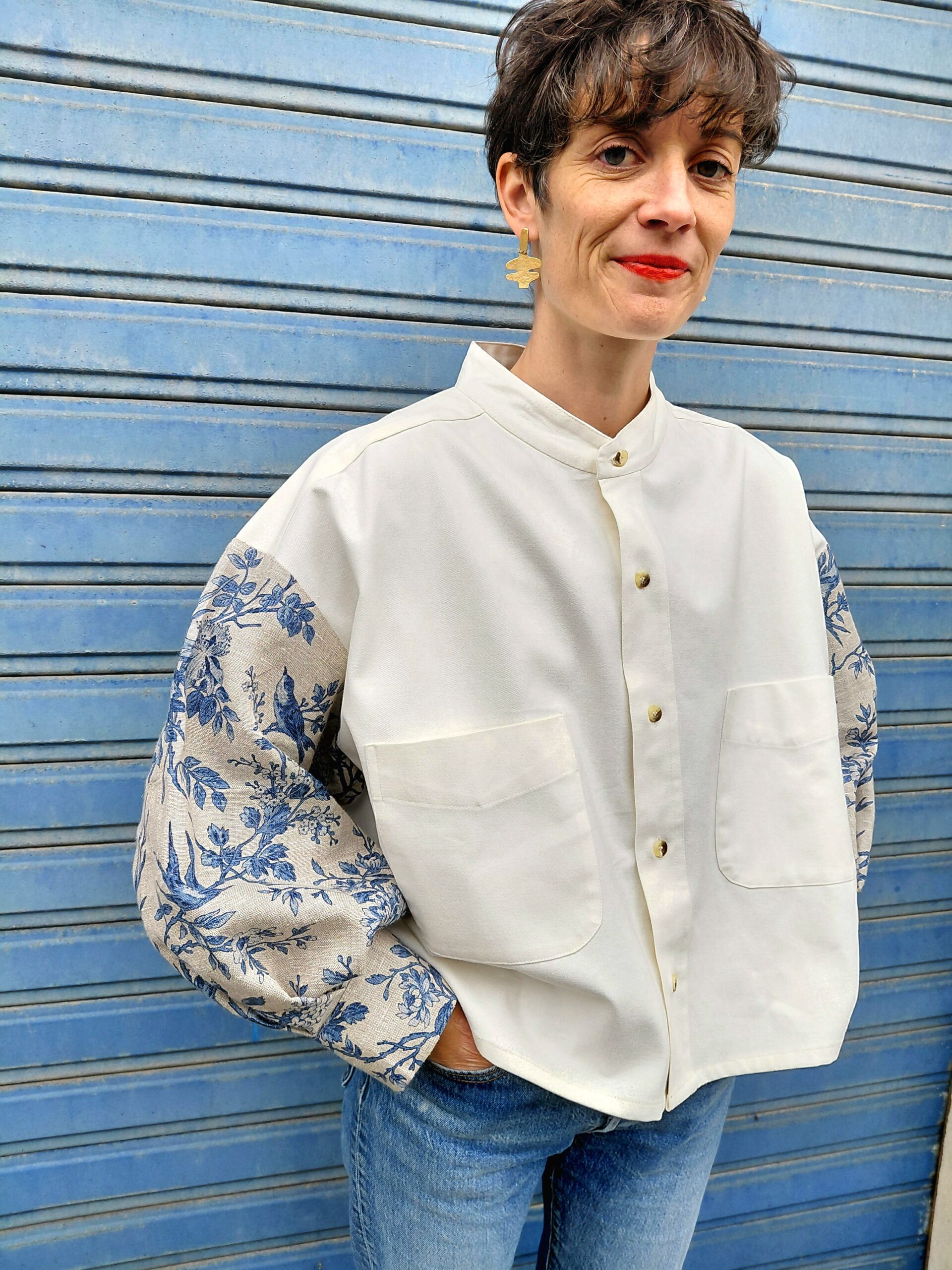 Sur-chemise beige, écrue, bleu, brique – manches personnalisables